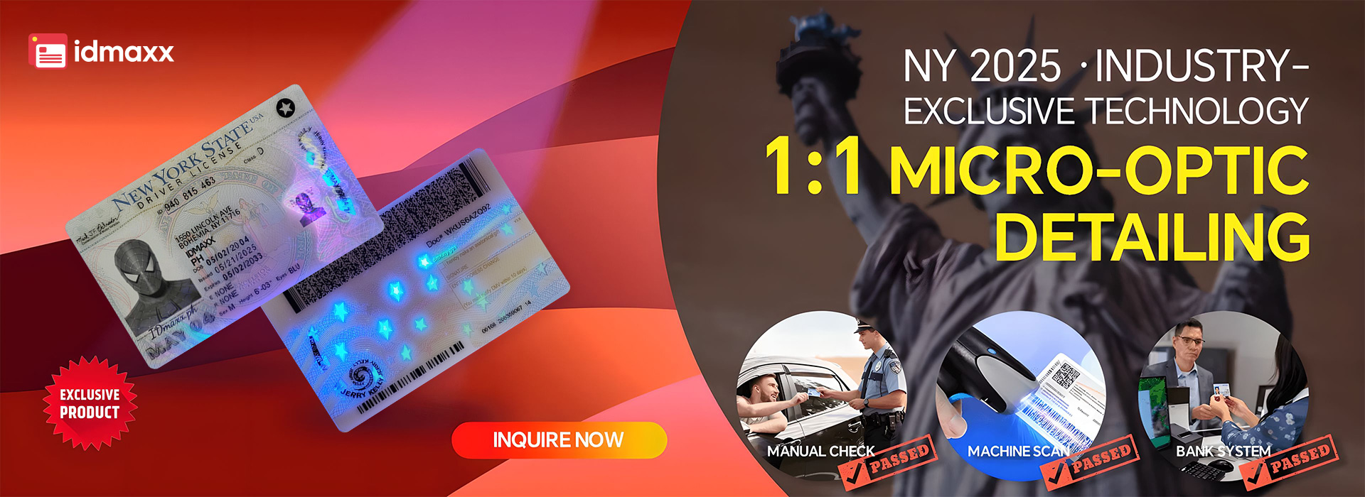 Our IDs are 100% secure and scannable, with authentic holograms. Made with high-quality laser printers and materials like Teslin or polycarbonate, they pass blacklight and UV tests.